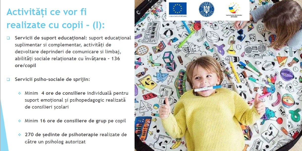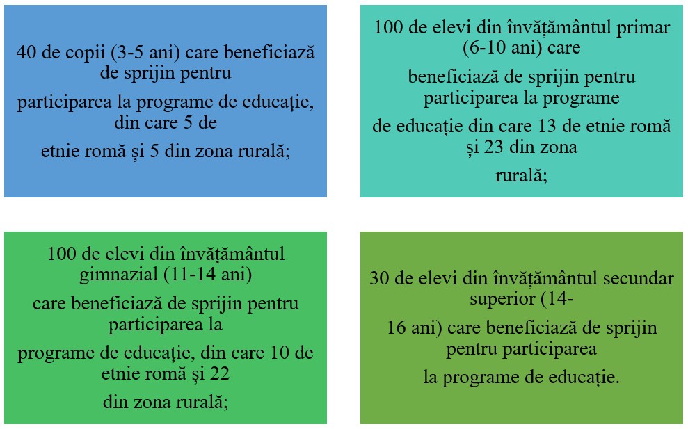 Obiectivul general al proiectului este cresterea nivelului de participare la educatie a prescolarilor, elevilor din invatamantul primar (6-10 ani), gimnazial (11-14 ani) si secundar superior (14-16 ani) care au parinti plecati la munca in strainatate prin implementarea unor masuri integrate de educatie si consiliere sociala la nivelul judetului Gorj si prin stimularea colaborarii intre unitatile scolare, autoritatile si institutiile locale, ONG-uri si comunitate.